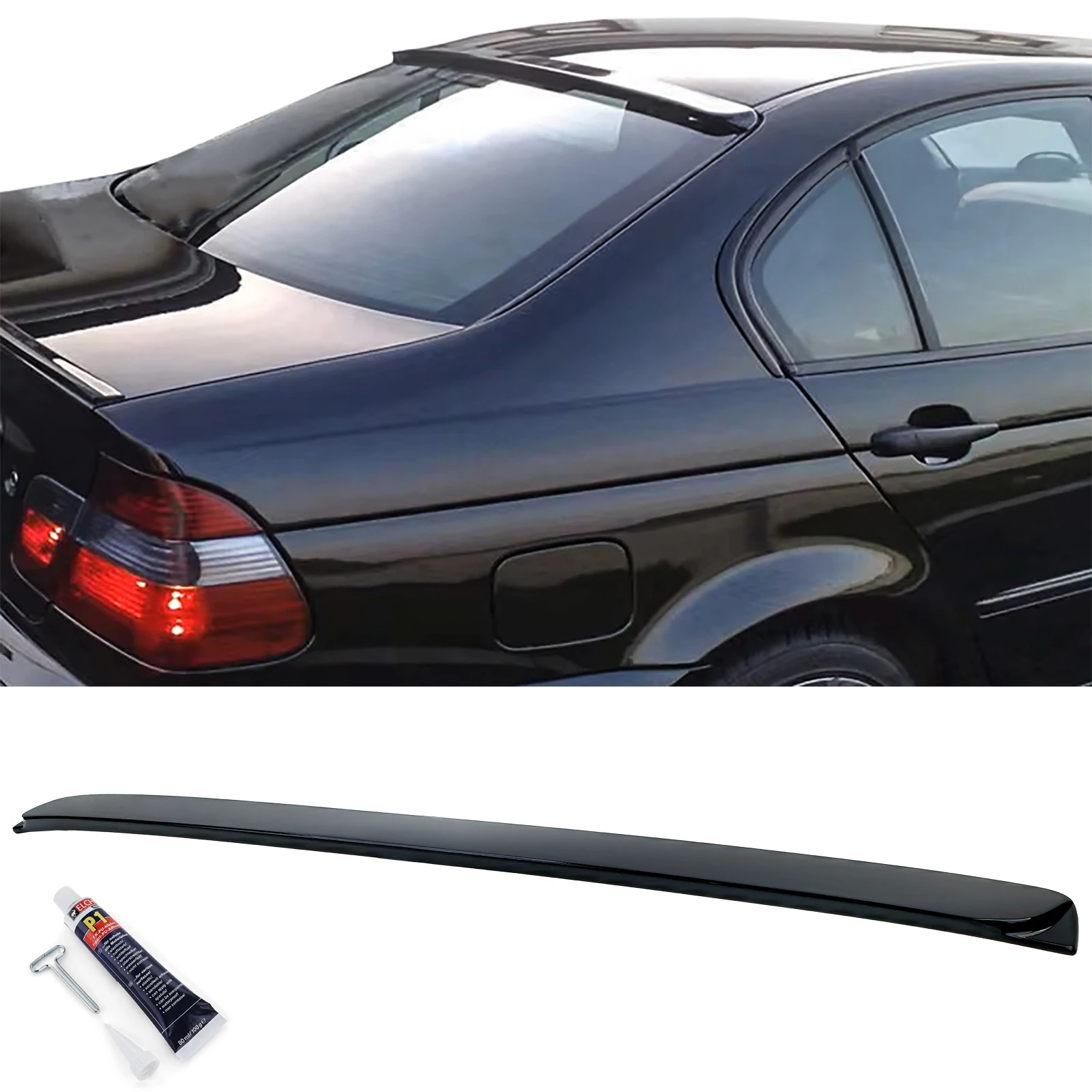 BMW E46 sedan AC Schnitzer stílusú lakkozott fekete hátsó ablak spoiler