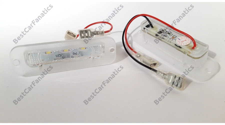 A gyári helyére egyszerűen beszerelhető 6000K fehér SMD LED-es rendszámtábla világítás.