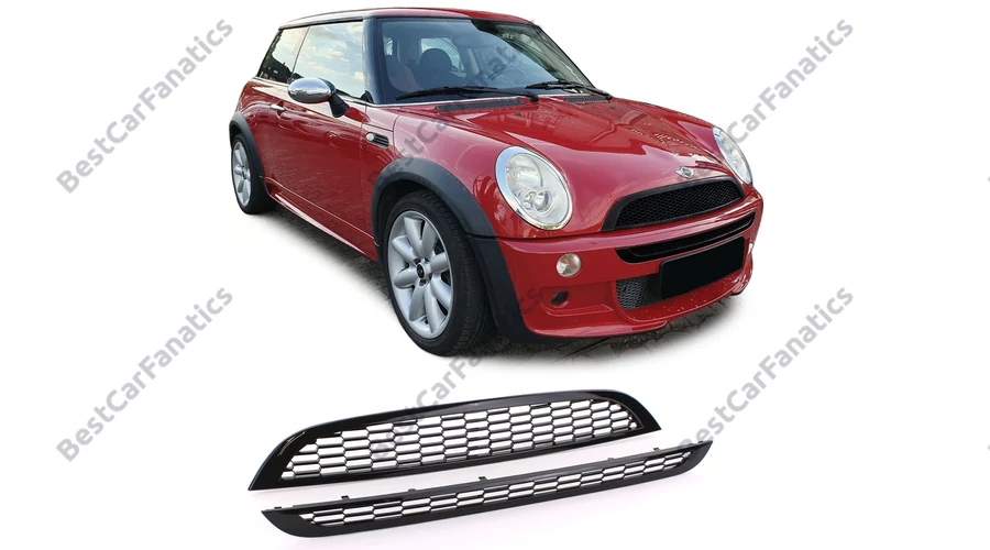 Méretpontos ABS (műanyag) anyagú lakkozott fekete hűtőrács Mini Cooper R50 R53 2001-2006 közötti típushoz.